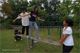 Uncle Jason roped me in to help with the cover artwork of an Scripture Union devotional. I asked for the assistance of fearless d'NAers. Cang Ling asked, "How dangerous is dangerous?" and I said, "Broken bones, maybe." He answered, "Okay!" And then I received a similar response from Oon-Hui, after Valerie declined for fear of heights.